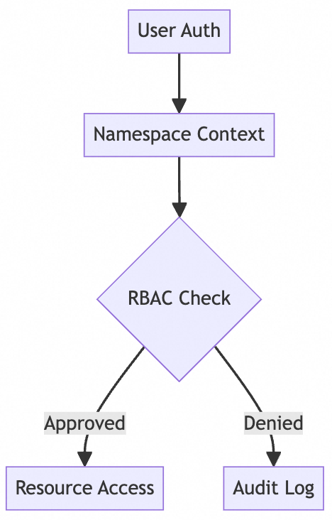 ApprovedDeniedUser AuthNamespace ContextRBAC CheckResource AccessAudit Log